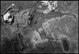 RWANDA. 1994. Clothing and bleached bones were all that remained of this refugee, slain with over 1000 others at the parish church of Nyarubuye. Their bodies were not found until 44 days after the killings.