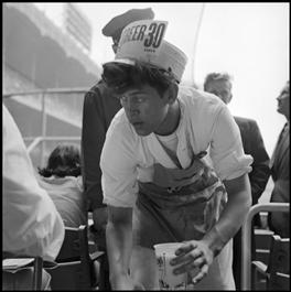 USA. New York City. 1949. Beer vender in the right field stands of Yankee Stadium.