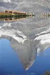 SWITZERLAND. Zermatt. 2003. In an art installation by HA SCHULT, 1000 Trash People sculptures are displayed in front of the Matterhorn at Stelli Lake, above Zermatt.