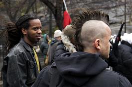 USA. New York City. 2003. Anti-war in Iraq protesters gather in Marcus Garvey Park on East 124th Street.