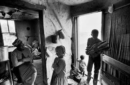 USA. Alabama. Selma. 1965. Inside of cabin, boy holding firewood....