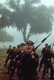 USA. Parris Island, South Carolina. 1970. Bayonet training under oak trees with Spanish Moss in the morning mist.