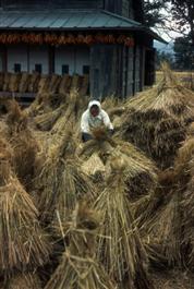 JAPAN. Five Lakes Region. 1961. Farm woman during harvest near...