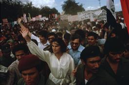 NICARAGUA. Managua. 1980. Violeta BARRIOS DE CHAMORRO, Alfonso ROBELO, Sergio RAMIREZ, and Daniel ORTEGA on the 2nd anniversary of the assassination of Pedro Joaquin Chamorro. Both Robelo and Violeta Chamorro resigned from the Junta in April 1980.
