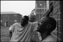USA. Syracuse, New York. August 2001. "Lost Boys" outside their apartment complex.