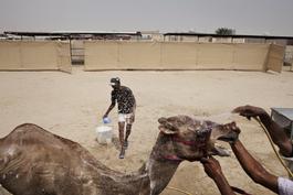 QATAR. 2012. Nepali laborers washing camels at a race track. In the Gulf states, guest workers perform almost every imaginable task.