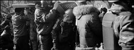 UKRAINE. Kyiv. February 18, 2014. Self defence members clash with police at the Parliament buildings. At least 26 people were killed and hundreds wounded that day.