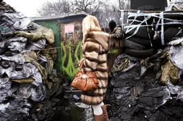 UKRAINE. Kyiv. February, 2014. Protesters at barricade on Hrushevsko Street.