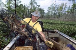 USA. Crawfish fishery. Louisiana Swamp. 1988.