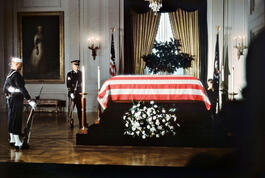 USA. Washington, D.C. November 25, 1963. Coffin of John F. KENNEDY placed in the East Room, White House.