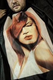 UKRAINE. Kyiv, Ukraine. December 9, 2014. Ivan getting a haircut. Ivan, sapper for the Ukrainian army is 25 years old, he lost both hands and partial eyesight attempting to defuse a booby trap near Luhansk, an East Ukrainian town under separatist control. He was taken prisoner and later released in an exchange.
