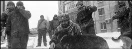 November 30, 2014. Cossack separatists at the front line with German shepherd patrol dog.
