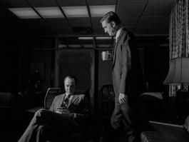 USA. Los Angeles. 2014. On the set of Mad Men during the filming of the 7th and final season. Actors Vincent Kartheiser and Aaron Staton.