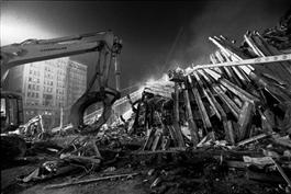 USA. NYC. 9/21/2001. Heavy machinery is used to remove large pieces of steel from pile of rubble that used to be the World Trade Center.