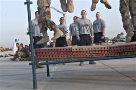 IRAQ. Baghdad. April 21, 2005. FOB Camp Independence, former city airport. PT (Physical Training). Early morning workout.