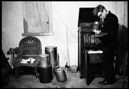 USA. Fairmont, Indiana. 1955. James DEAN in his aunt and uncle's basement.