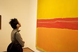 USA. Neww York City. The Museum of Modern Art. Visitor observing a painting by Mark ROTHKO (No. 5/No. 22, 1950).