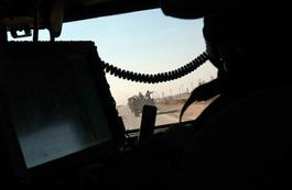 IRAQ. Baquba. December, 2004-January, 2005. Camp "Warhorse." 1st Infantry Division US Military. View from inside an armoured Humvee. Roadside bombs, IED (Improvised Explosive Devices) are the main killers of US soldiers. The view out of the window of their armoured Humvee is what they mainly see of Iraq. The most banal and mondaine scene can suddenly become the main danger for them. Every single car, person etc... is under scrutiny of suspicion.