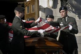 USA. Springfield, Vermont. November 22, 2003. Funeral service for Sgt. Scott C. Rose, who was killed in Iraq, with Honor Guard by VFW (Veterans of Foreign Wars) Ludlow and Chester local posts.