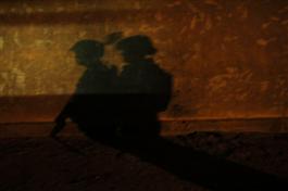IRAQ. Falluja. June 14, 2005. al-Anbar province. Shadow of Marine and Iraqi. 2nd MEF (Second Marine Expeditionary Force), US Marines from Camp Lejune, North Carolina. 4th Marine Reserve. According to the new military plan, US Marine/Army units are getting attached to new Iraqi pro-American forces in an effort to gradually hand security operation over to the Iraqis.