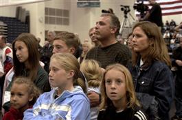 USA. Toms River, New Jersey. October 30, 2004. Jenna and Barbara Bush campaign event at Toms River High School.