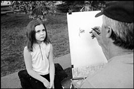 UKRAINE. 2006. A girl gets her portrait drawn in the town square....