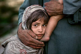 AFGHANISTAN. Feyzabad. 1990. A young refugee girl and her father.