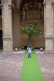 ITALY. Bologna. 2006. Kid with artificial tree in a palazzo courtyard.
