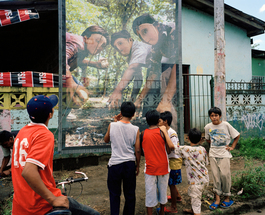 NICARAGUA. Masaya. July 2004. Re-Framing History, Nicaragua mural project installation based of original photographs taken in 1978 of the popular insurrection against Somoza.