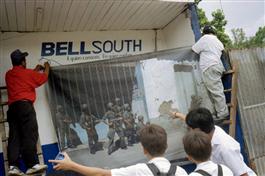 NICARAGUA. July 2004. Re-Framing History, Nicaragua mural project installation based of original photographs taken in 1978 of the popular insurrection against Somoza.