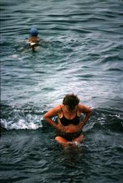 USSR. Russia. 1963. Bathers in startling costumes on a Black...