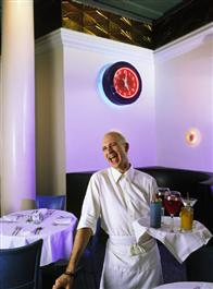 USA. New York City. 1986. Daryl WOOD, waiter and ballet dancer, at Bar Lui on Lower Broadway.