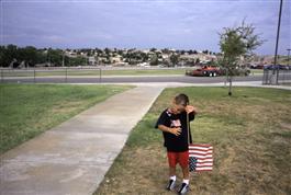 USA. Las Cruces, New Mexico. September 11, 2002. Boy at a flag...