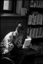 USA. New York City. Harlem. 1989. Young girl reading in the Countee Cullen Library.