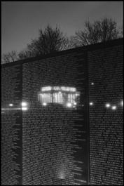 USA. Washington, D.C. 1987. A reflection of the Lincoln Memorial at night on the Vietnam Memorial.