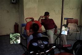 CUBA. Havana. 2002. Relaxing at a parking lot.