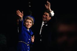 USA. Landover, Maryland. January 21, 1985. Ronald and Nancy REAGAN preside over inaugural events at the Capitol Center for Reagan's second Inauguration Day.