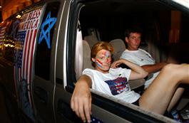 USA. NYC. September 10, 2002. Couple, Tracy DOHERTY(L) and Jeff GIBSON(R), came from Plymouth, Massachusetts to commemorate the one year anniversary of the attack on the World Trade Center.