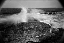 USA. Pemaquid, Maine. 1990. Surf and spray at Pemaquid Point.