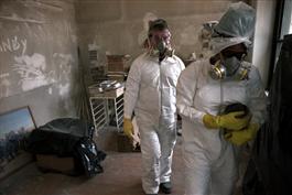 USA. New York City. May 31, 2002. Married artists Pat Moore and Andy Jurinko in their apartment on Cedar Street. Their home of 25 years is still covered in dust from the collapse of the World Trade Center on September 11, 2001. With no end in site, they have been trying to clean the apartment for nine months.