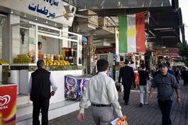 IRAQ. Erbil, Kurdistan. 2007. Kurdish flag on street outside...