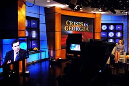 USA, New York, September, 25 2008. Georgian President Mikheil Saakashvili visits the US, UN. At CBS TV.