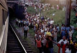 USA. Baltimore, Maryland. 1968. North Broadway and Ellsworth St. Robert Kennedy funeral train.
