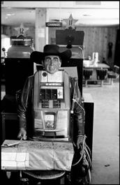 USA. Beatty, Nevada. 1960. One-armed bandit.