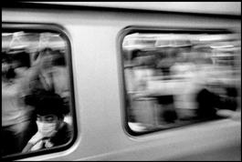 TAIWAN. Taipei. 2003. Commuters during the height of the SARS epidemic in Taiwan.