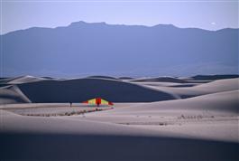 USA. New Mexico, 1990. Hang glider in White Sands National Monument.