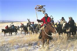 USA. Wounded Knee, South Dakota. 1990. December 1990 was the 100th anniversary of the massacre at Wounded Knee. These Indians are traveling to the grave site to honor the members of the Sioux tribe who were slaughtered by General George Custer's Army.