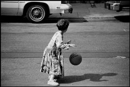 USA. New York City. 1995. Hasidic child playing on a Brooklyn street.