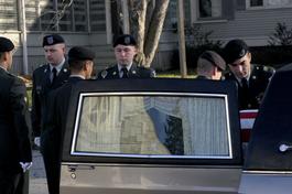 USA. Springfield, Vermont. November 22, 2003. Funeral service for Sgt. Scott C. Rose, who was killed in Iraq, with Honor Guard by VFW (Veterans of Foreign Wars) Ludlow and Chester local posts.