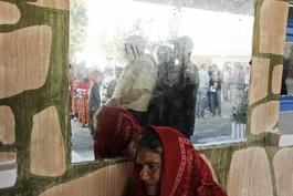 TUNISIA. Hammam Sousse. October 23, 2011. A woman waits for her turn to vote at a school in the town of Hamma Sousse, the hometown of former Tunisian dictator Zine Abedine Ben Ali.
